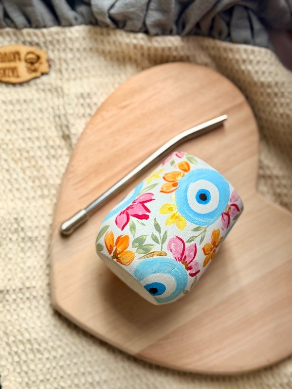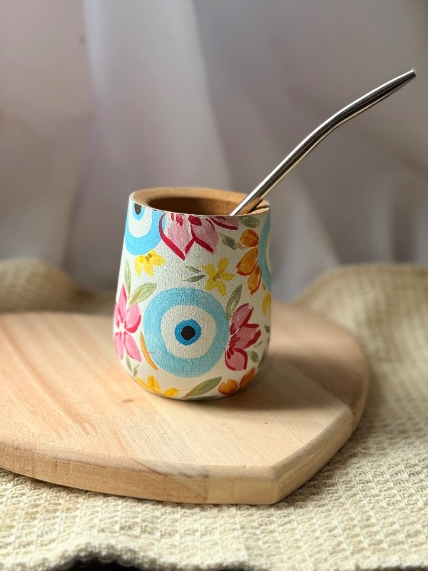 Mate de algarrobo pintado a mano, incluye bombilla ✨🌸