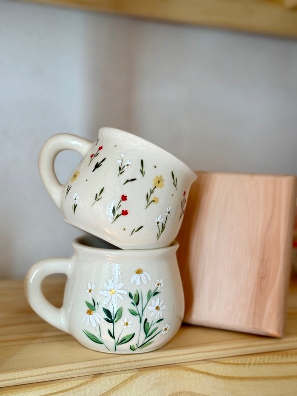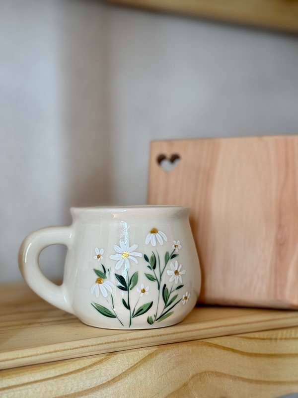 Taza de ceramica color crema pintada a mano con diseño floral 🫶🏻 ideal para acompañarte todos los días en tus infusiones