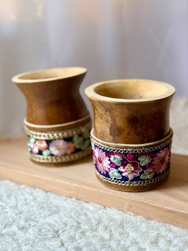 Mate criollo con base de cuero y guarda bordada con diseño y cuerpo de calabaza pulida, 100% artesanal✨🇦🇷🧉