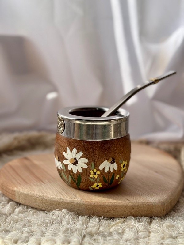 Mate imperial Campito de algarrobo, con virola lisa de acero y dije 🧉🇦🇷🩷