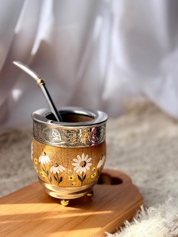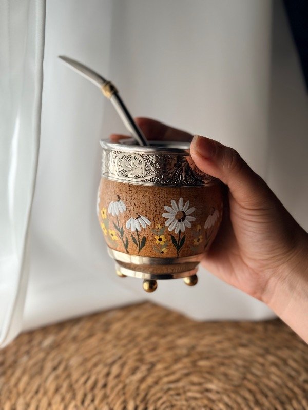 Mate imperial de algarrobo Campito, con virola de acero cincelada, base de acero y pelotitas de alpaca. Detalles delicados y artesanales 🧉🇦🇷🩷