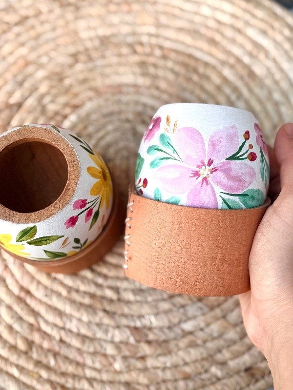 Mate Roma de algarrobo artesanal, confeccionado y pintado a mano.