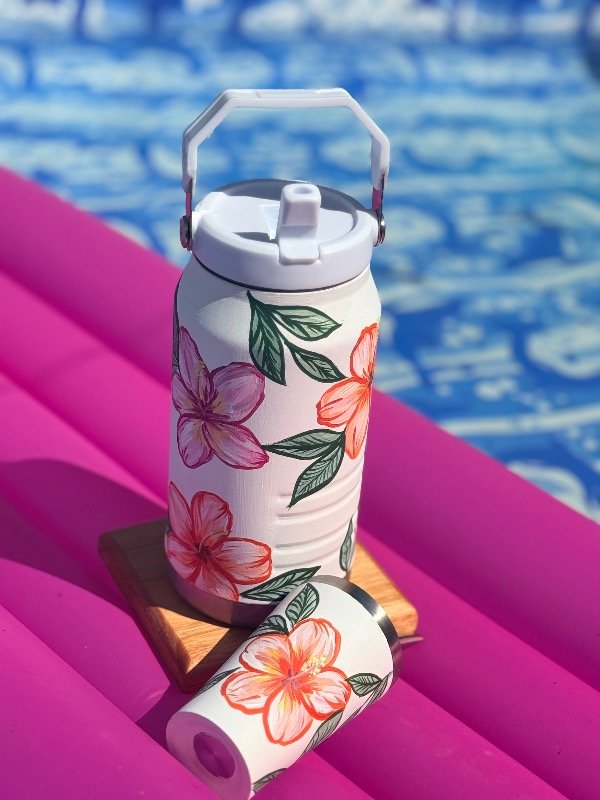 Incluye termo de 1200ml y vasito de acero con bombilla, todo pintado a mano 🫶🏻