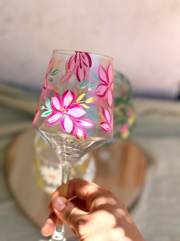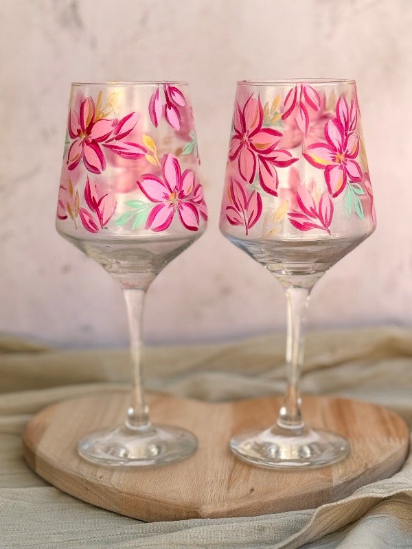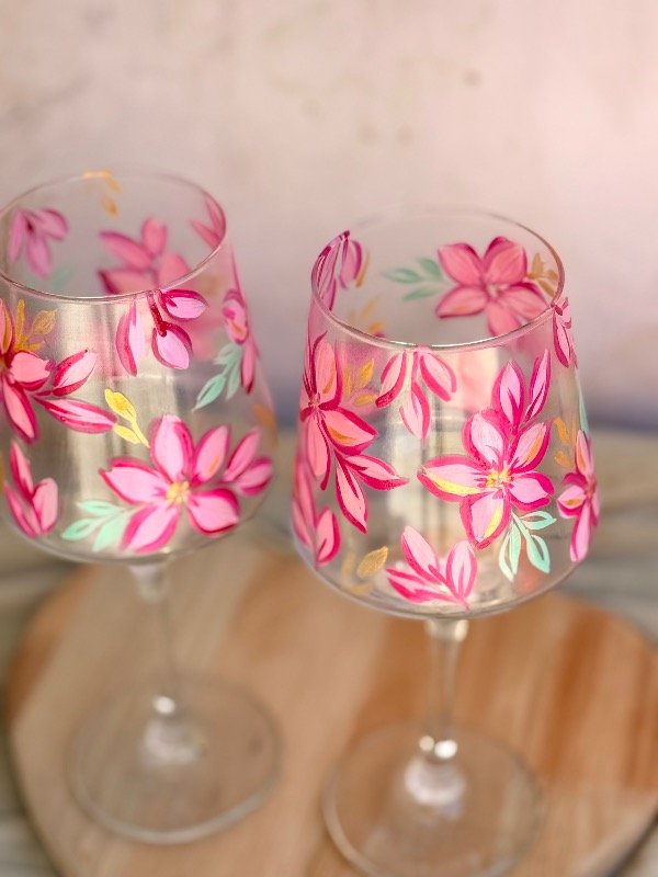 set de 2 de copas pintadas a mano con diseño botánico 🥂🌸